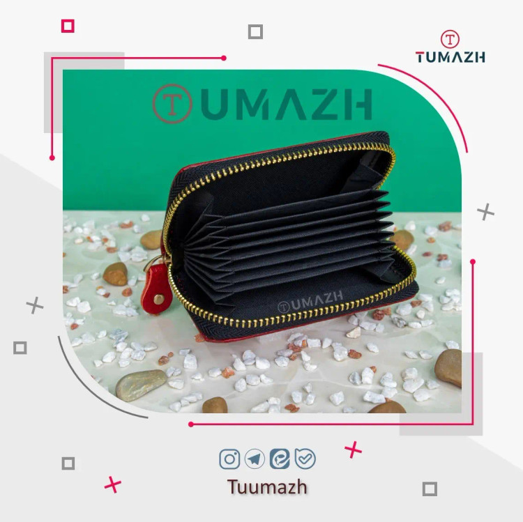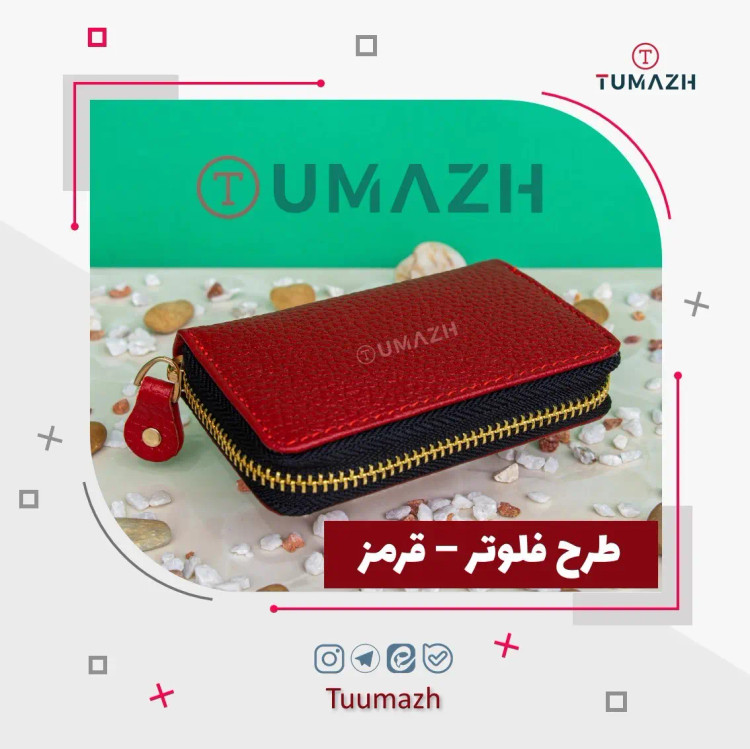 جاکارتی دور زیپ آکاردئونی چرم طبیعی طرح فلوتر رنگ قرمز