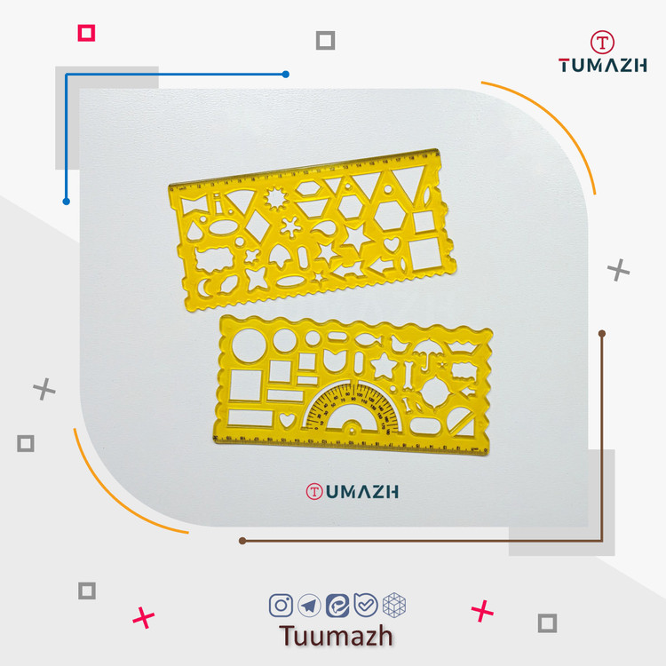 از ویژگی های مهم این شابلون ژله ای مختلط این است که علاوه بر یک شابلون، می توان از آن به عنوان خط کش ۲۰ سانتی متری و نقاله ۱۸۰ درجه ای استفاده نمود.