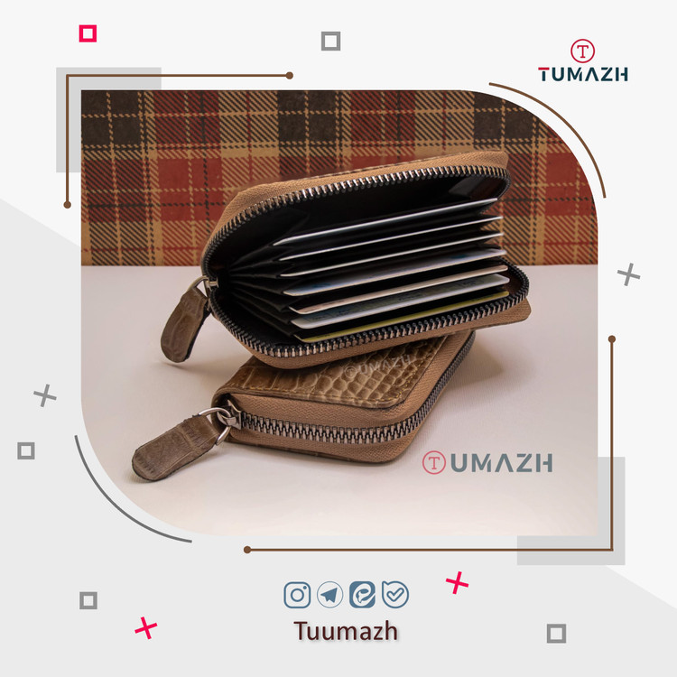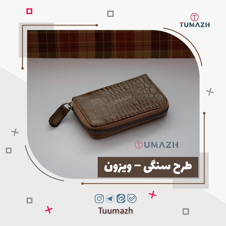 جاکارتی دور زیپ آکاردئونی چرم طبیعی طرح سنگی رنگ ویزون