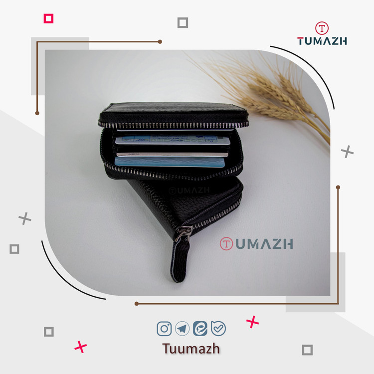 جاکارتی دور زیپ آکاردئونی چرم طبیعی طرح فلوتر رنگ مشکی