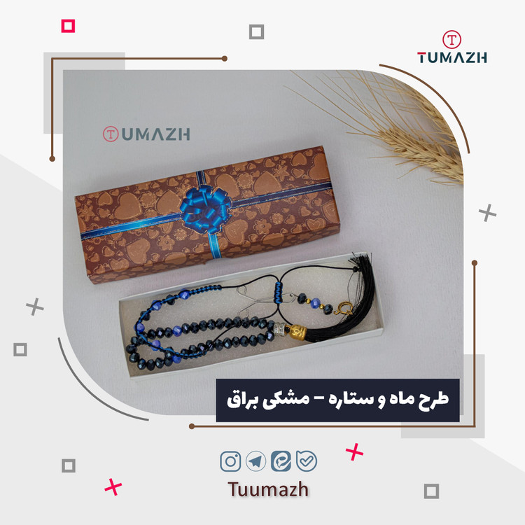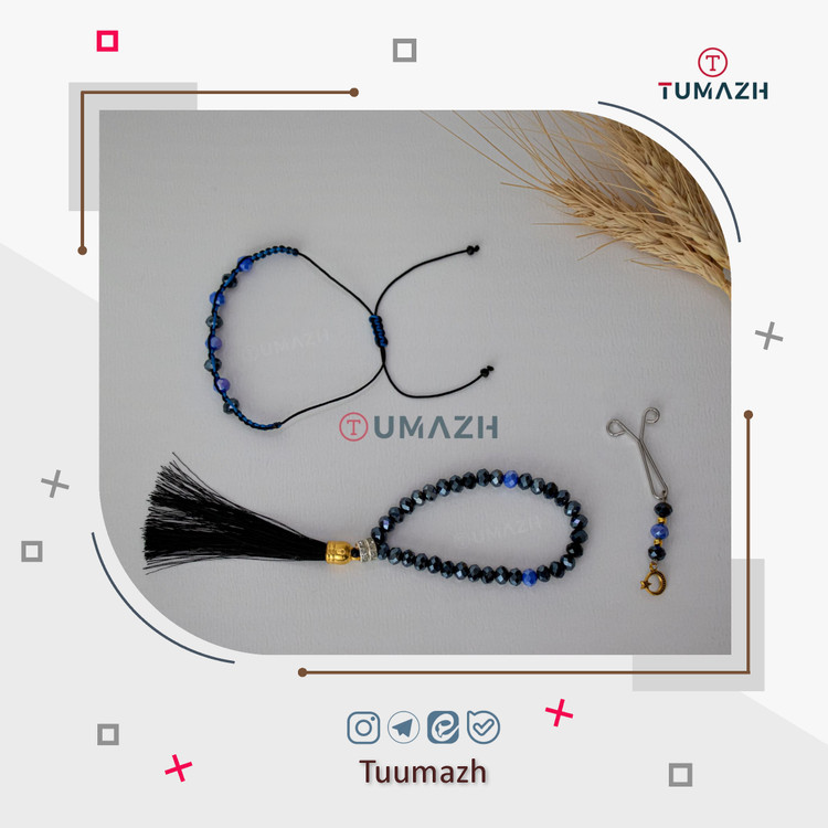 دیدن محصولات مرتبطست تسبیح ، گیره روسری و دستبند طرح ماه و ستاره رنگ مشکی براق ؛ یکی از ست های خاص فروشگاه توماژ می باشد که از ترکیب مهره های کریستالی زیبا و جذاب و در اوج ظرافت و کیفیت بالا ساخته شده است . نخ به کار برده شده در ساخت دستبند از نوع درجه یک و براق بوده و به دلیل دارا بودن قفل کشویی قابل تنظیم برای همه سایزها می باشد .