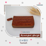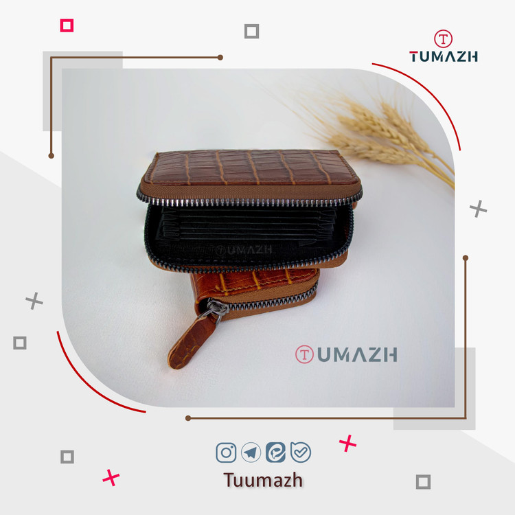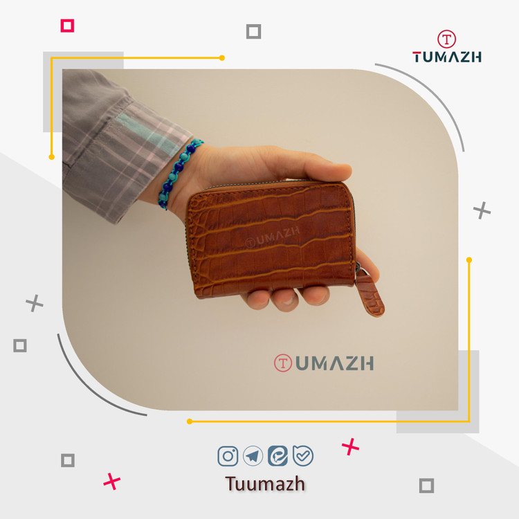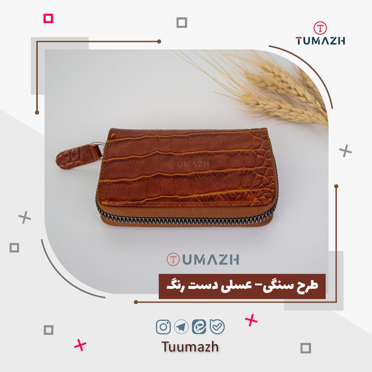 جاکارتی دور زیپ آکاردئونی چرم طبیعی طرح سنگی رنگ عسلی دست رنگ