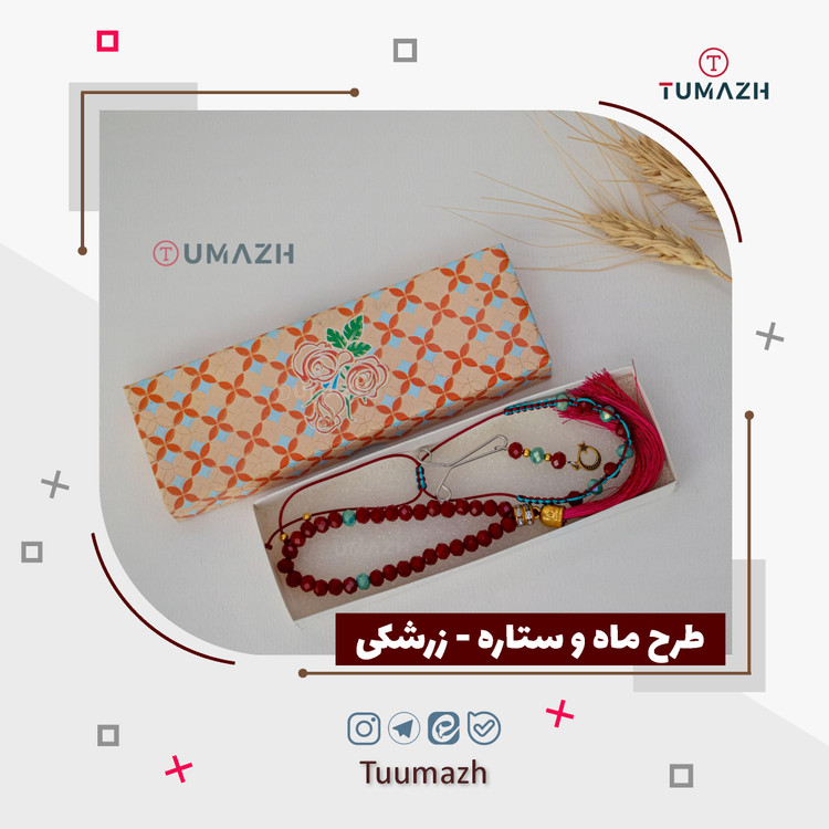 دیدن محصولات مرتبطست تسبیح ، گیره روسری و دستبند طرح ماه و ستاره رنگ زرشکی ؛ یکی از ست های خاص فروشگاه توماژ می باشد که از ترکیب مهره های کریستالی زیبا و جذاب و در اوج ظرافت و کیفیت بالا ساخته شده است . نخ به کار برده شده در ساخت دستبند از نوع درجه یک و براق بوده و به دلیل دارا بودن قفل کشویی قابل تنظیم برای همه سایزها می باشد .