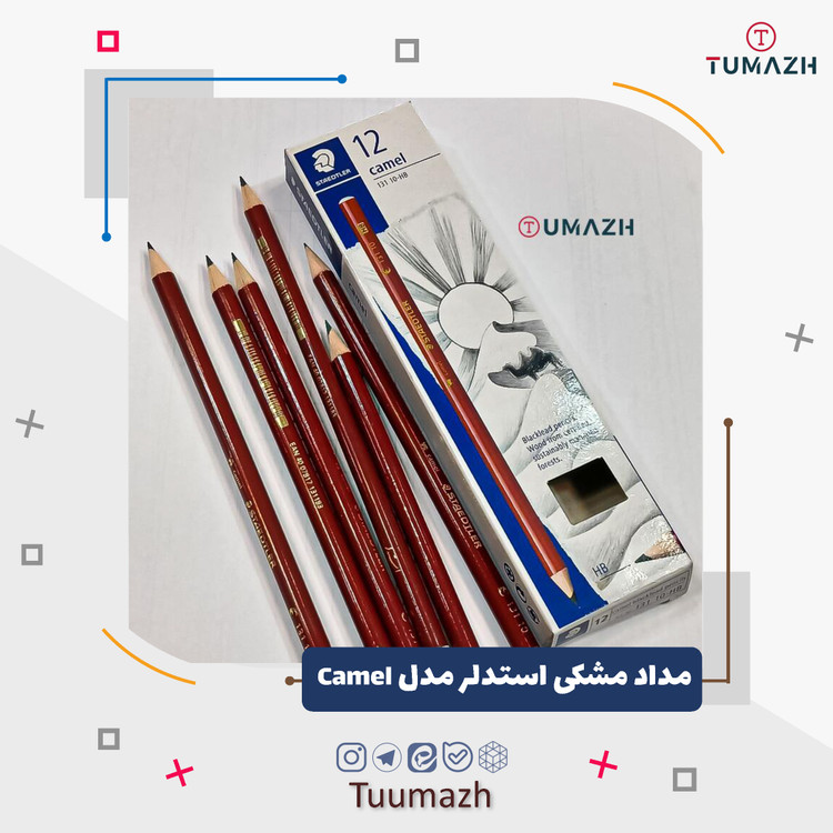 مداد مشکی «استدلر» مدل «Camel» با نشان شتر معروف خود، برای بسیاری از ما حسی نوستالژیک به همراه دارد. این مدادها با بدنهی گرد بسیار خوشدست هستند و بهراحتی در دست قرار میگیرند. مداد مشکی استدلر با نوک HB مدادی مناسب برای طراحی و همچنین افرادی است که در امتحان کنکور شرکت میکنند.